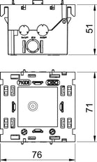 Frontborgende aparatuurinbouwdoos is a singular unit for Module 45 system, featuring a swing away and if necessary, removable bottom for time-saving cable connection, with feed openings for cable diameters up to 14 mm.