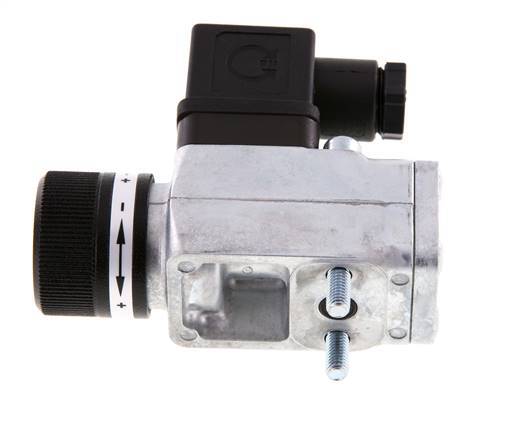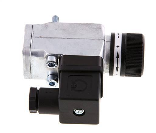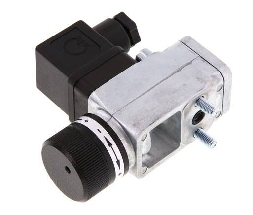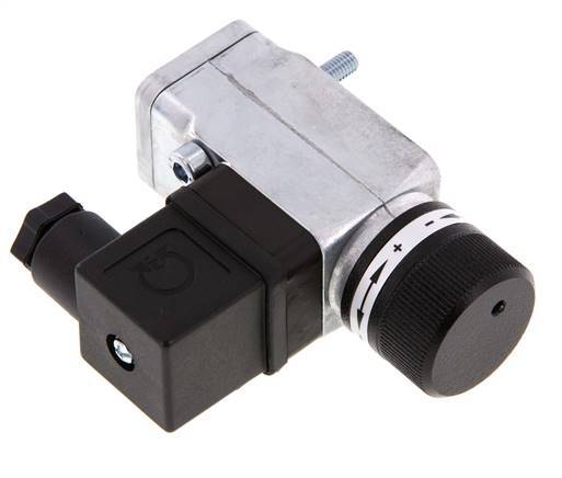 This pressure switch with changeover contacts and setting pressure range from 0.5 to 8 bar (7 to 116 psi) is made in a diaphragm design. The switch hysteresis is 10 - 15%. The pressure switch is made from zinc die-cast and with an NBR seal. It has a switch capacity of 3 A @ 24 V DC or 6 A @ 250 V AC and can be mounted using a flange 5.3x20 port.