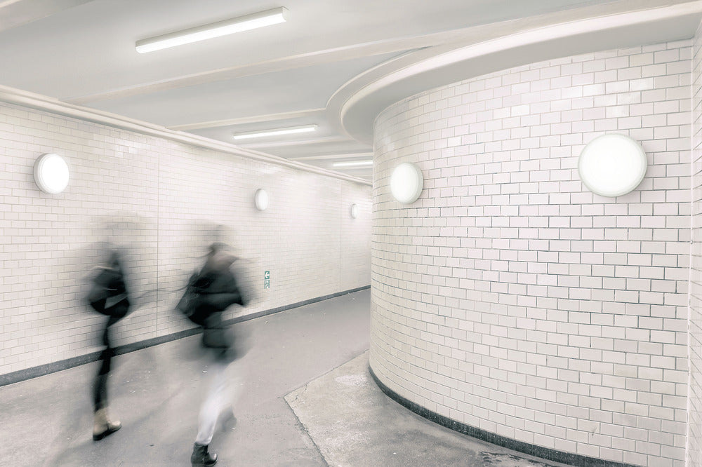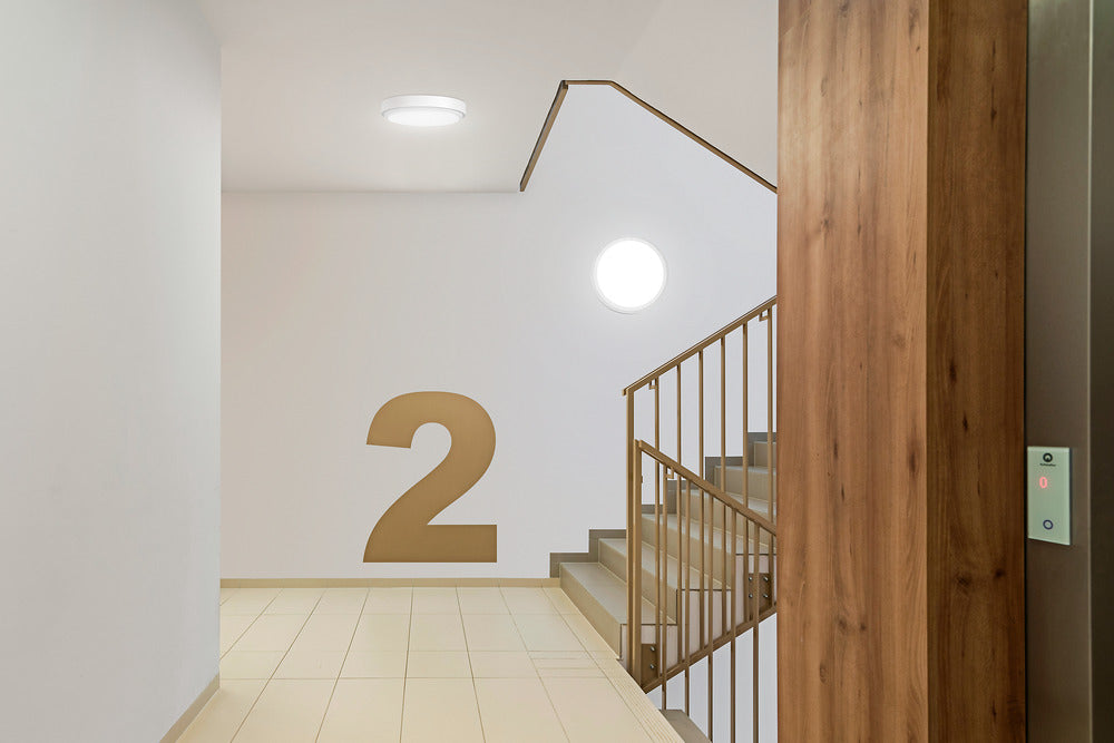 Circular surface-mounted wall light accessory designed for passage areas like hallways and staircases. Features a modern, understated design with uniform light distribution that complements most architectural styles. Installation is quick and efficient thanks to push-in connectors. This black half-moon ring integrates seamlessly with the CoreLine wall-mounted lighting system.