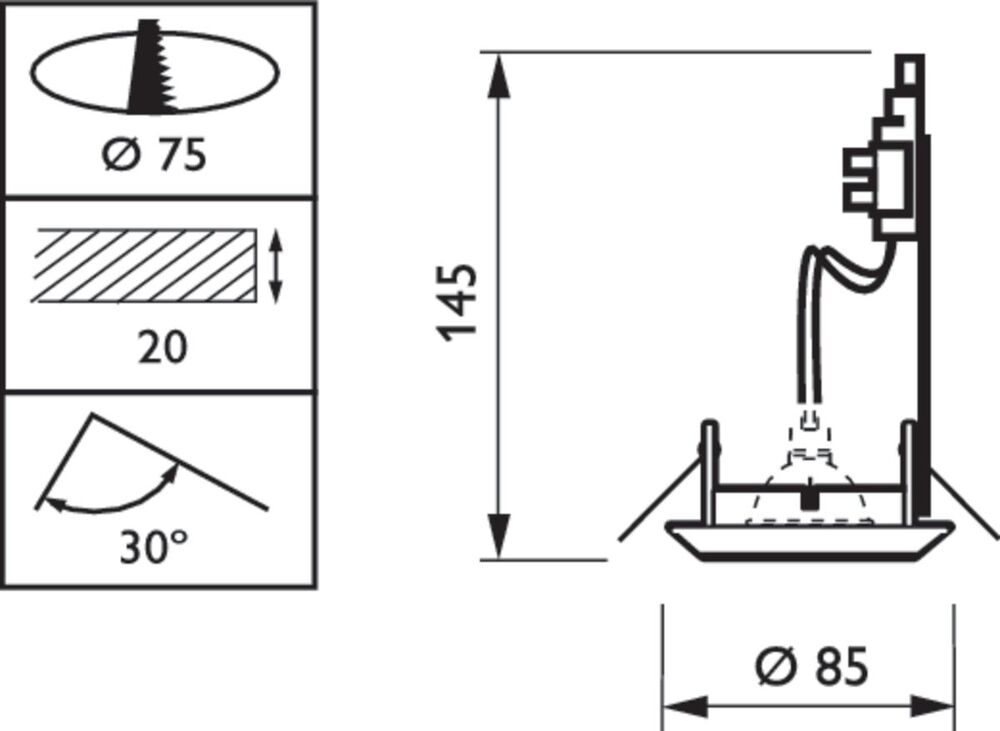 Philips Zadora LED spot LED spotlight downlight/spotlight/light, subcategory spotlight, effective luminous flux according to IEC 365lm, temperature 3000K, light color white, suitable for lamp power 5W, system power 5W, housing white, suitable for recessed mounting, recessed diameter 75mm, degree of protection (IP) IP20.