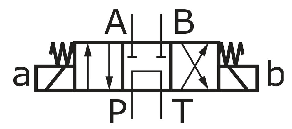 Argo-Hytos direct operating 4/3 way hydraulic solenoid vave with NG6 (D03) mounting interface (the mounting interface NG 6 is standardised according to DIN 24340-A6, ISO 4401-03, CETOP R 35 H-03 and NFPA-D03) and a 230 V AC coil. The valve has a cast iron housing with NBR (nitrile rubber) sealing. In the initial position the flow flows from P to T and the ports A and B are closed. The valve is suitable for systems with a max pressure of 350 bar (5075 Psi) and a operating temperature range of -30 - 80 ° C (-22 - 176 ° F). The valve has a flow rate of 80 l/min and a maximum allowable viscosity of 500 cSt. The NBR (nitrile rubber) sealing is suited for mineral oils. Manual override feature can be used to operate the system during power failure. The manual override can be operated up to 5-10 bar. Since the valve has a maximum operational pressure of 350 bar (5075 psi), it can be used for high pressure applications. The valve has an IP65 rating.