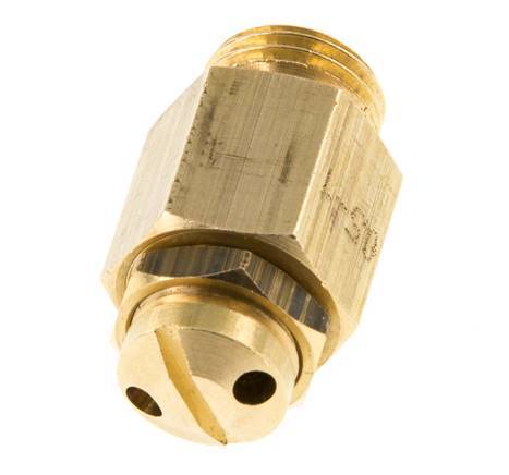 The G 1/4 inch brass adjustable safety valve that is used to control the pressure in a system by venting once the set pressure has been achieved. The valve opens using a spring-based mechanism to protect your system from being subjected to pressures that exceed the maximum safety levels. The set can be manually set between 0.5-1 bar (7.25-14.50 psi). This model has G 1/4 inch ports and the housing material is brass with a FPM/FKM sealing. This valve blows the gas off freely into the atmosphere, because of this it is only suitable for compressed air and other non-toxic and non-flammable gases. The maximum blow-off capacity is 3 m3/h. The temperature range of this safety valve is between -10 °C to 180 °C (14 °F to 356 °F).