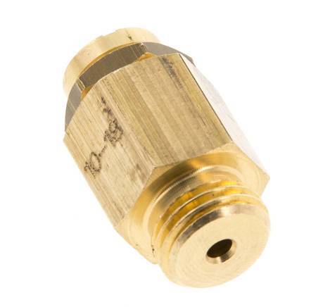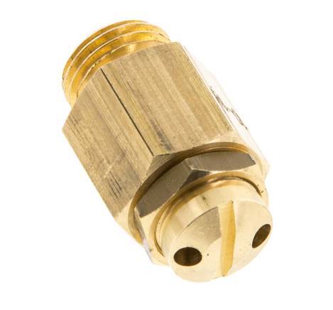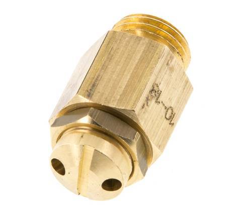 The G 1/4 inch brass adjustable safety valve that is used to control the pressure in a system by venting once the set pressure has been achieved. The valve opens using a spring-based mechanism to protect your system from being subjected to pressures that exceed the maximum safety levels. The set can be manually set between 10-18 bar (145.04-261.07 psi). This model has G 1/4 inch ports and the housing material is brass with a FPM/FKM sealing. This valve blows the gas off freely into the atmosphere, because of this it is only suitable for compressed air and other non-toxic and non-flammable gases. The maximum blow-off capacity is 52.19 m3/h. The temperature range of this safety valve is between -10 °C to 180 °C (14 °F to 356 °F).
