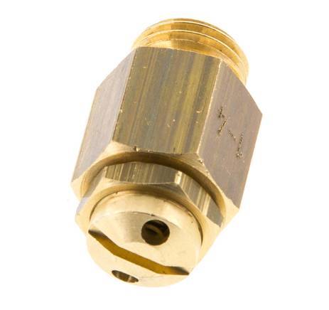 The G 1/4 inch brass adjustable safety valve that is used to control the pressure in a system by venting once the set pressure has been achieved. The valve opens using a spring-based mechanism to protect your system from being subjected to pressures that exceed the maximum safety levels. The set can be manually set between 1-4 bar (14.50-58.02 psi). This model has G 1/4 inch ports and the housing material is brass with a FPM/FKM sealing. This valve blows the gas off freely into the atmosphere, because of this it is only suitable for compressed air and other non-toxic and non-flammable gases. The maximum blow-off capacity is 12 m3/h. The temperature range of this safety valve is between -10 °C to 180 °C (14 °F to 356 °F).