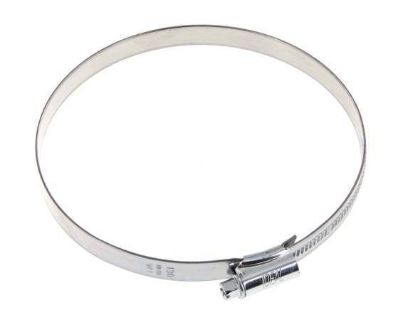Ideal hose clamp with an adjustable range of 110 - 130 mm. It has a band width of 12 mm. This hose clamp is made according to DIN 3017-1 standard. The housing material is galvanized steel. The hose clamp is tightened or loosened by using a screwdriver due to the worm gear design.