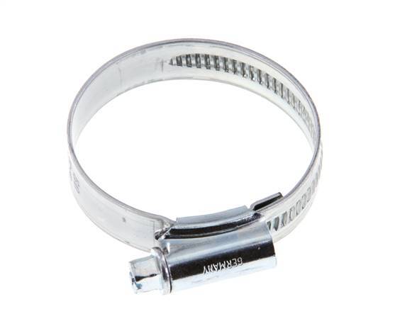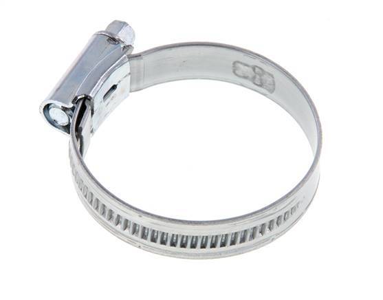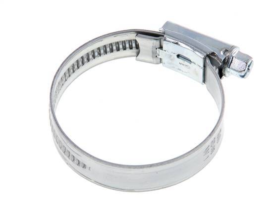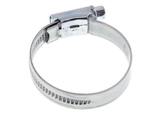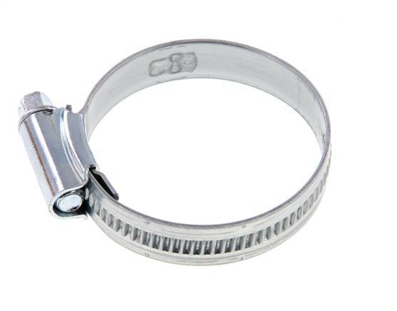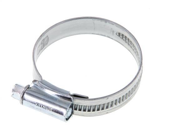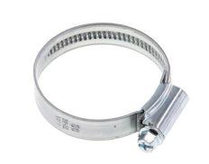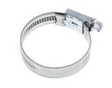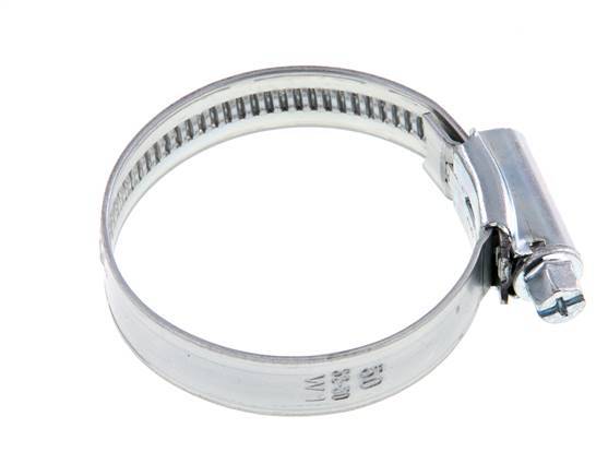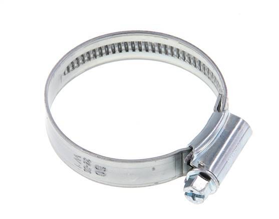 Ideal hose clamp with an adjustable range of 32 - 50 mm. It has a band width of 12 mm. The housing material is galvanized steel. The hose clamp is tightened or loosened by using a screwdriver due to the worm gear design.