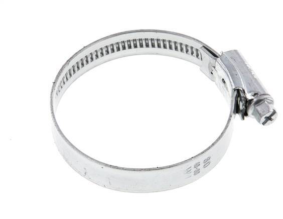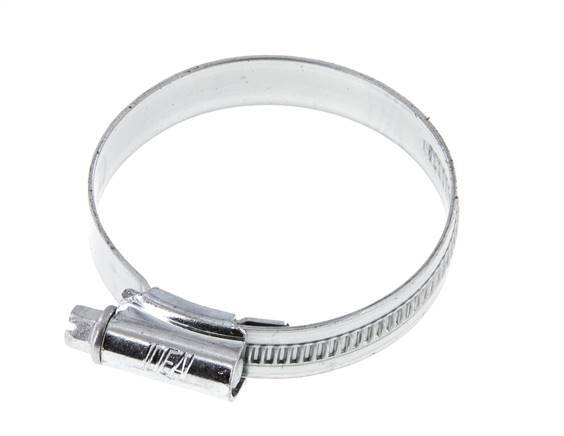 Ideal hose clamp with an adjustable range of 40 - 60 mm. It has a band width of 12 mm. This hose clamp is made according to DIN 3017-1 standard. The housing material is galvanized steel. The hose clamp is tightened or loosened by using a screwdriver due to the worm gear design.