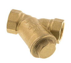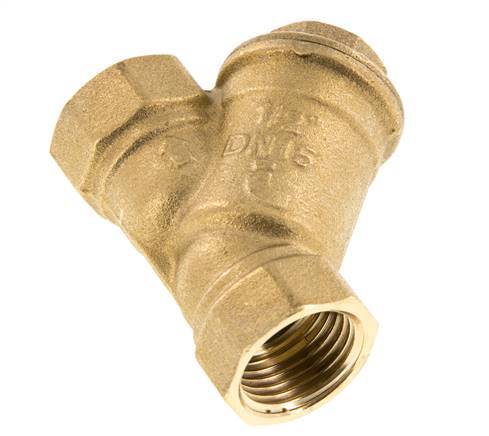 Brass Y-strainer with G 1/2 inch female threads and a stainless steel mesh with a 0.2 mm filter size. For media up to 20 bar (290 psi) at temperatures between -20 °C and 110 °C (-4 to 230 °F). To be used in a single flow direction (see arrow on housing). The residue collects in the filter and can be cleaned by unscrewing the sealing cap. The seal is made of NBR (nitrile rubber).