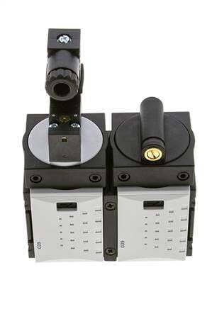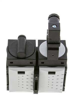 This soft-start valve provides a controlled increase of downstream pressure at startup and can be dumped when needed to exhaust the system pressure quickly. At a pressure of approximately 50% of the input pressure, the start-up valve switches over to maximum throughway. Pressure build-up can be slowed down or sped up using an adjustment screw. A soft start is necessary if cylinders moving too quickly can cause entrapment or damage during machine startup. The valve has G 1/4 inch ports and the maximum flow rate is 1300 l/min. The coil voltage is 230 V AC and nominal power 3 VA. The input pressure range is from 2.5 to 10 bar (36.25 to 145.0 psi). A shut-off valve must be installed before a start-up valve.