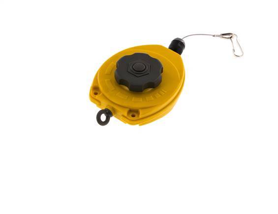 This is a lightweight spring-operated tool balancer & retractor for loads ranging from 0.5 to 1.5 kg. It has a 1.5 m cable you can attach your tool. It retracts the tool after use. The cable force increases as the cable is extended. Typically, these are mounted above the workspace to allow for easy access to tools while maintaining a clean workspace.