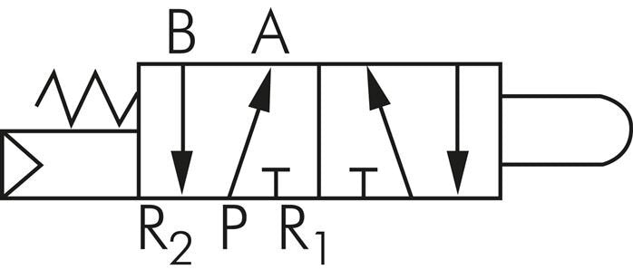 Use a 5/2-way valve in applications that move continuously between two positions, such as extending and retracting double-acting cylinders, where it is not necessary to stop air pressure. Machine automation systems use pneumatic stem valves to detect the position of parts mechanically. The linear motion of a moving part operates the valve by pushing against the plunger. Pneumatic stem valves are often used to sense end strokes of cylinders or doors.
